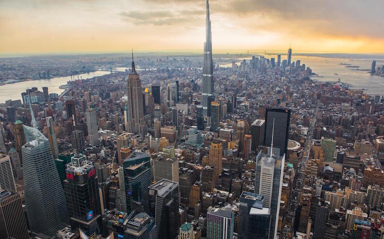 The Burj Khalifa is currently the tallest standing structure in the world. It measures in at 2,722 feet tall. If placed in New York it would stretch almost 1,000 feet past the One World Trade center and almost 1,300 feet taller than the Empire State Building.