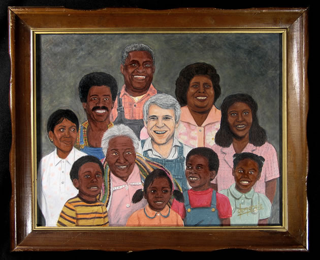 Within the mix of Demarais' collection of awkward family portraits are commissioned works in which the artist includes whomever the client chooses to be in the portrait with the popular fictional family. Actress Kristen Wiig even commissioned a portrait of fellow Imogene co-star Brian Petsos to be included with the Huxtables, which can be seen, below. While the artist appears to be open to commissioned works, he also has selected prints of his Film Family Portraits on sale through Gallery 1988.