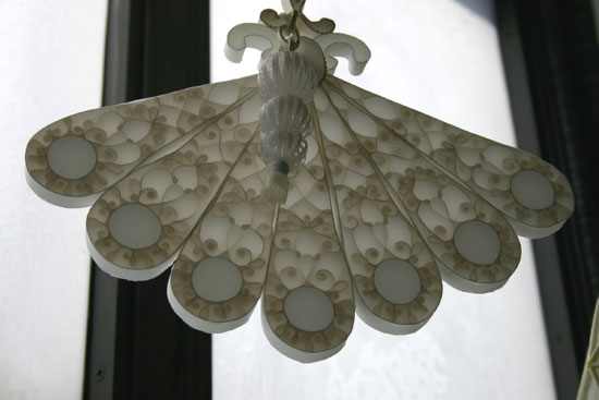 What is the value of a beautifully crafted gem? What is its worth if it's made of paper? Paper sculptor Kirsten Hassenfeld explores the fantasy-driven world of opulent extravagance through her handcrafted paper jewelry. Using translucent white paper, the artist forms intricately designed polygons that resemble brilliantly cut gemstones. As for how she goes about constructing the pieces, Hassenfeld admits that the art is a repetitious and labor-intensive craft. Much of the work involves repeatedly cutting, folding, gluing and incorporating the quilling technique.