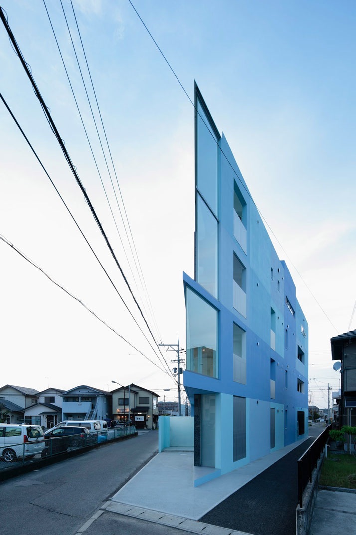 Now that's an interesting outside facade! Designed by Japanese architects Eastern Design Office, this new apartment building is rather unique in that it's a 4-story tall triangle. Known as “On the Corner,” the building is a mixture of concrete, glass, stone, and glass blocks. While the buildings shape may be a triangle, the facade is made up of squares cut out of those materials.