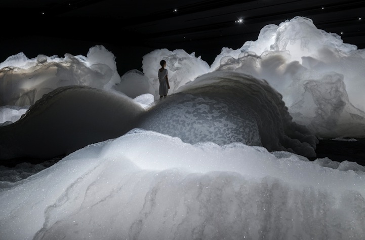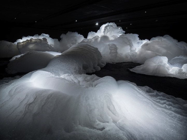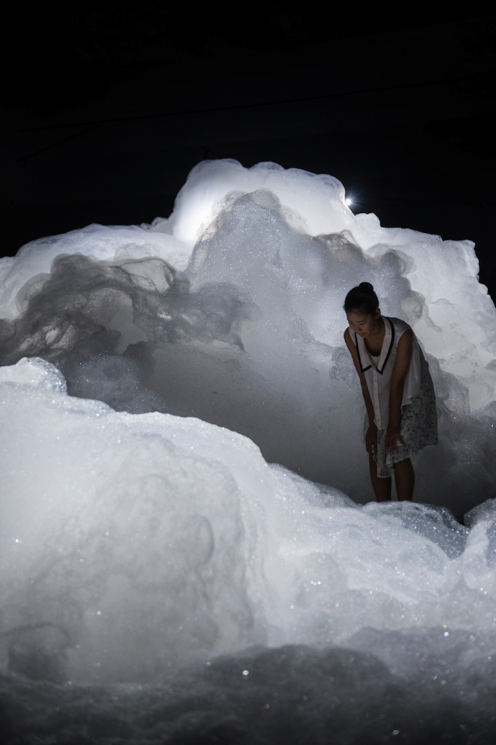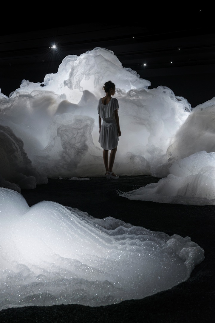 Foam is a spectacular installation by Japanese artist Kohei Nawa that transforms a room into a magical scene, making it seem as though visitors are walking up on the clouds. Unveiled at the Aichi Triennale 2013, the artist's piece offers a dreamy landscape in an otherwise pitch-black room. The Osaka-born, Kyoto-based artist creatively transports viewers to an alternate universe without ever having to physically move them. Instead, he forces visitors to tap into their own imagination.