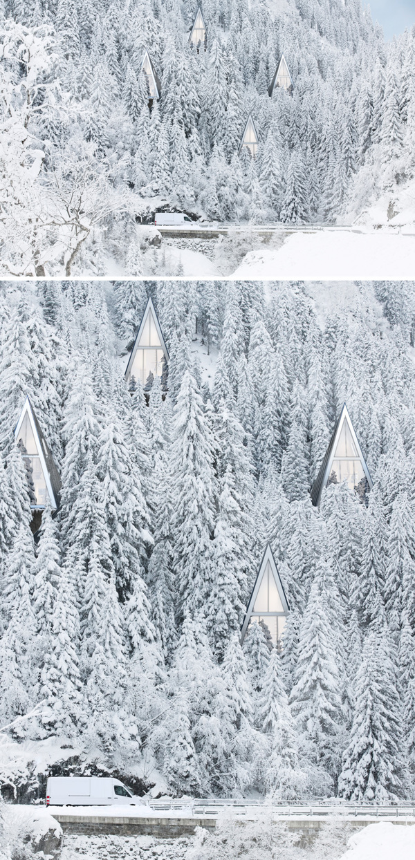 Primeval Symbiosis (Single Pole House) is an architectural design project by architecture student and interior designer Konrad Wjcik that seeks to organically install living spaces in forests without disrupting the innate beauty of nature. Wjcik's detailed presentation lays out the many benefits of this design plan in addition to the actual construction of each residence, which is fit to accommodate for households of two to four people each.
