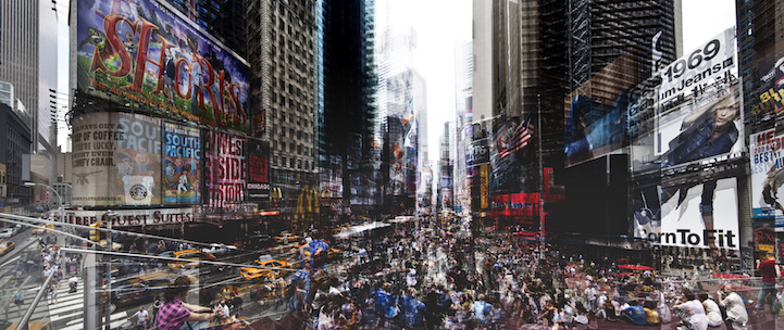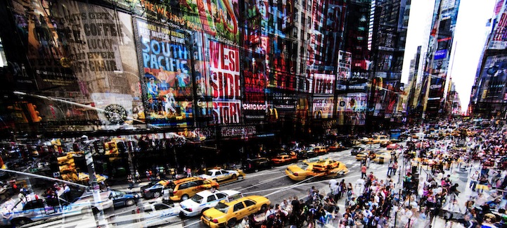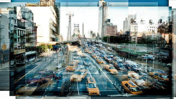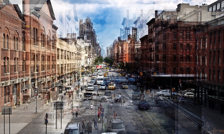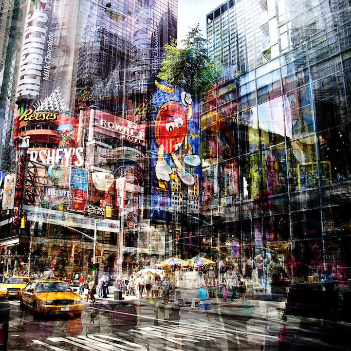 The series features colorful and energetic portraits of both New York and Berlin. Viewers might feel a bit hyper as they view the still photograph which so strongly convey the motion of cars zipping past and the life of people rushing by. Dequick says his work is “primarily a reflection on the contemporary city and more specifically the proliferation of modern urban space.” Through these compositions, the artist portrays the constant urban action and excitement that are generally challenging to communicate through just one still photograph.