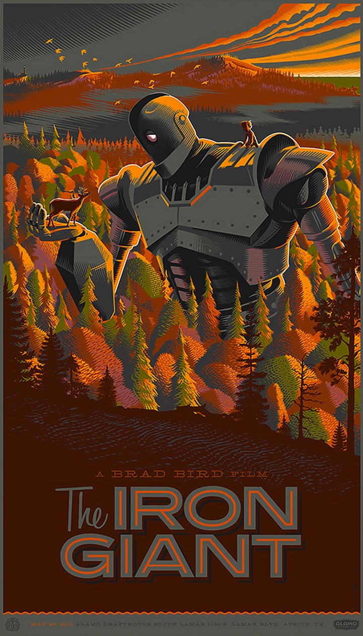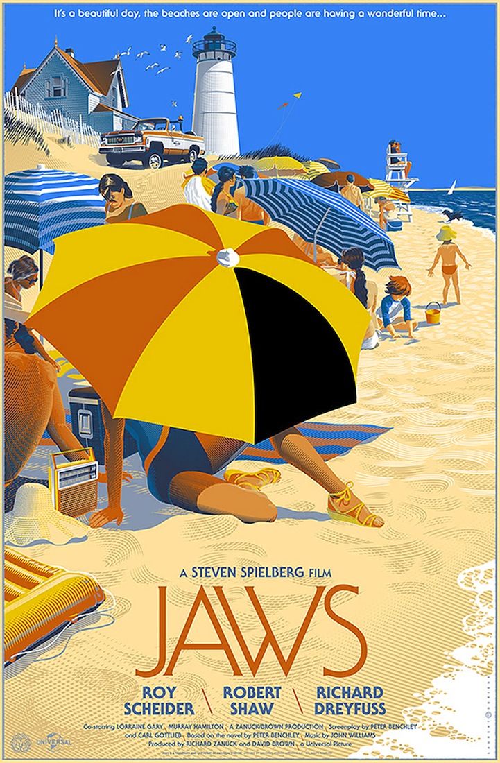 Brussels-based illustrator and graphic designer Laurent Durieux draws upon a variety of old films like Jaws, The Iron Giant, and The Birds as the inspiration for his series of intriguing movie posters. The artist uses a retro-futuristic approach to his alternative designs where bold colors and minimalist typography come together in incredibly unique screen prints.