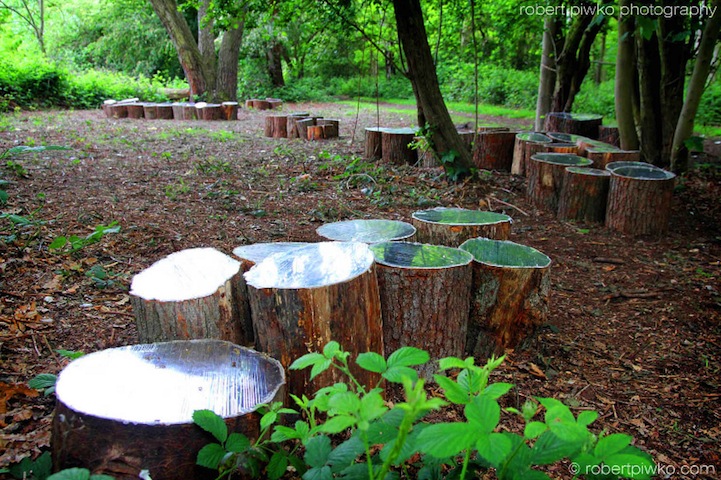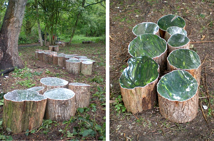 London-based installation artist Lee Borthwick has an extraordinary gift: she is able to seamlessly combine manmade mirrors with wooden stumps found in nature to form beautifully surreal works of art. The expert designer, who has presented her work as stand-alone wall art indoors and as a hidden exhibition in the middle of an otherwise untouched forest, creates pieces that are consistently eye-catching, regardless of its location.