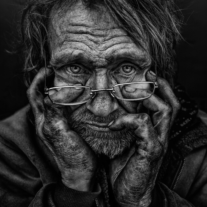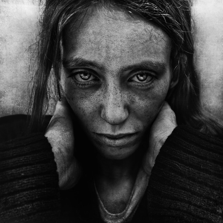 From sorrow and despair to warmth and dignity, Manchester, England-based photographer Lee Jeffries documents the expressive faces of homeless people in powerfully humanizing portraits. Using only his camera, natural light, and a small handheld reflector, he illuminates incredible details that reveal some of the wear of life on the streets. Without exploitation or pretense, the photographer spends time with each subject to create a personal connection before capturing a portrait.