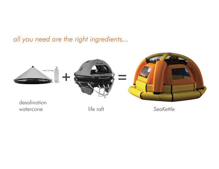 Imagine this: Your ship is sinking. You abandon ship with nothing but the clothes on your back, and you're thirsty, really thirsty. Lucky for you, you've arrived on-board the SeaKettle, a life raft that has the ability to desalinate salt water…