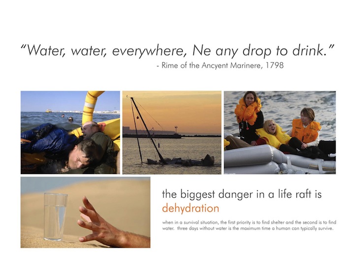 Designer Kim Hoffman got the inspiration for this project from the many stories of people suffering from extreme dehydration or death while being stranded in a life raft at sea. “With water all around, I thought, there's no way this should happen,” she says. “There's got to be a way to turn the seemingly endless amount of ocean water into viable drinking water. So, that is what I set out to do.”