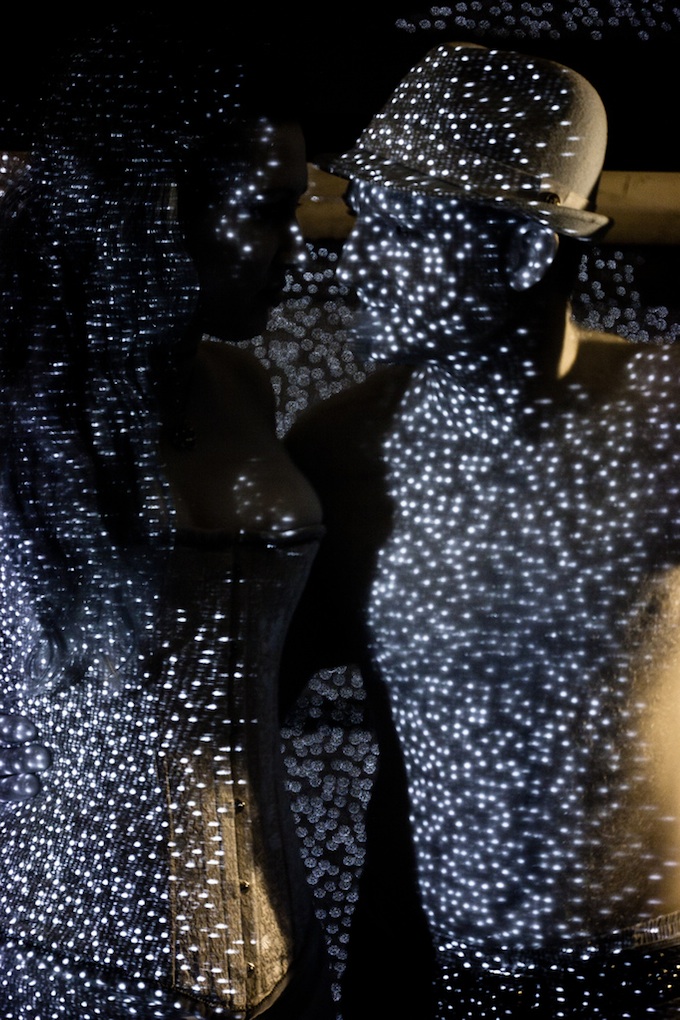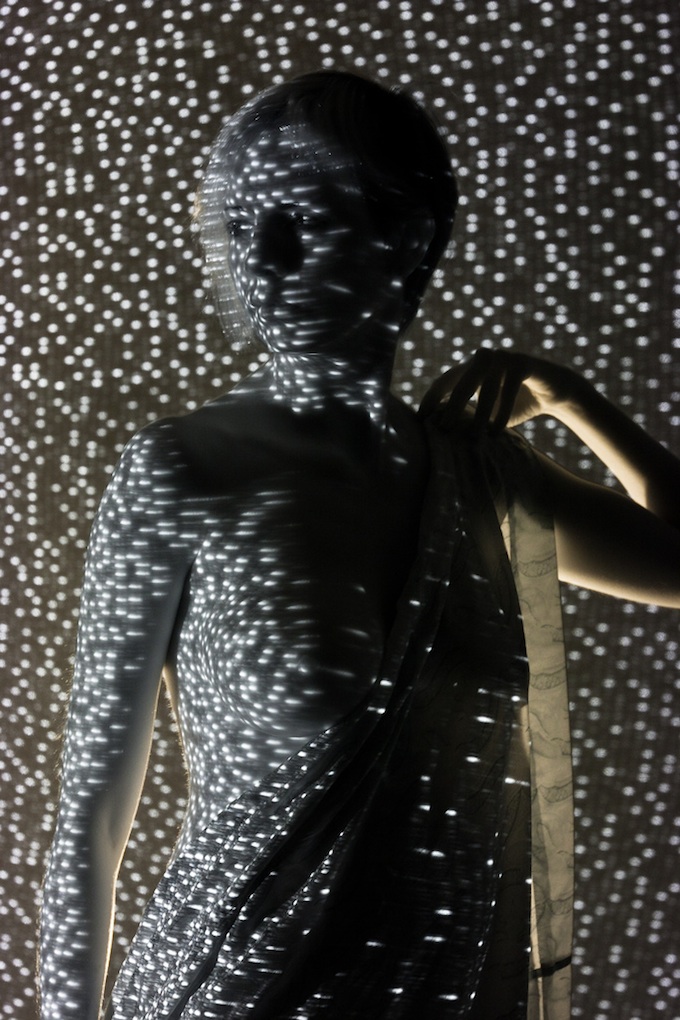 “As a photographer I am most interested in the nature and quality of light: how light behaves in the physical world, and how it interacts with and affects the subjects that it illuminates. For this shoot my models and I were essentially working blind, with the results visible only after each image was captured. Together, we explored the unique physicality of structured light, finding our way in the darkness by touch and intuition. Dancing with invisible light.”