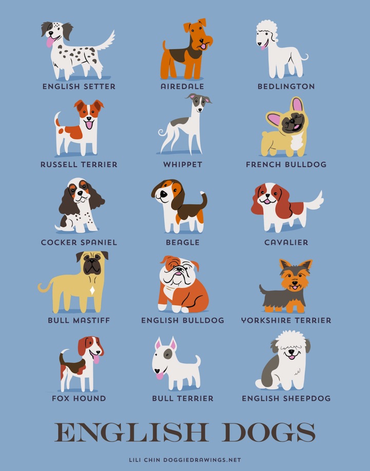 Our favorite types of dogs come from all over the world, and illustrator Lili Chin would know – she's drawn nearly 200 of them! Starting in the summer of 2014, she presented the series Dogs of The World, which is a collection of 192 canine breeds grouped by their geographical location and country. The illustrative posters feature cartoon-style characters that highlight the unique appearance of each dog.