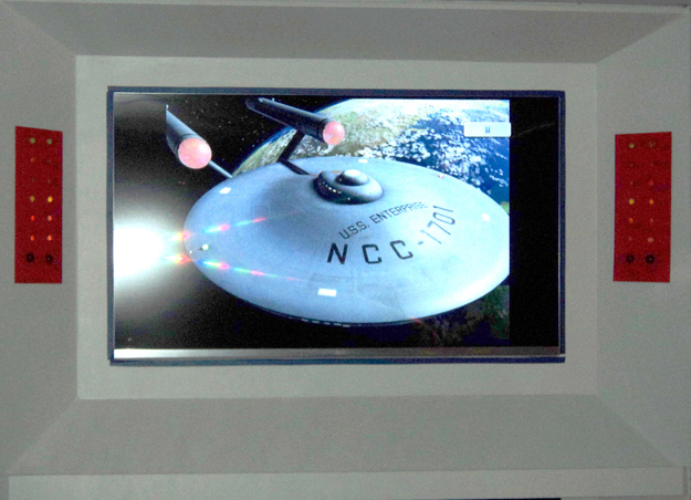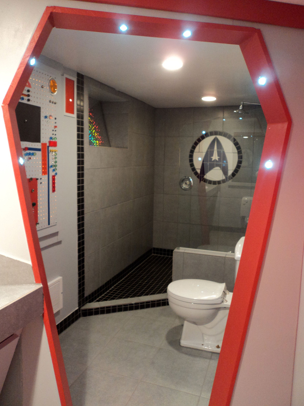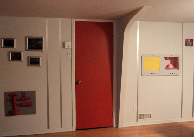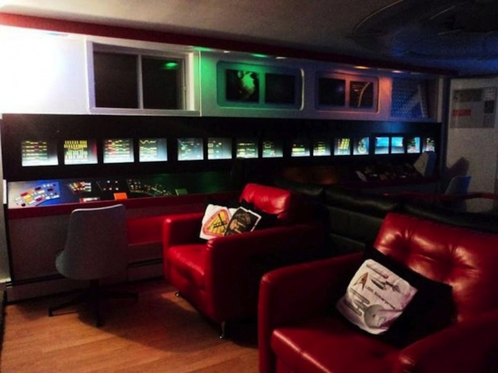 The renovation project began one day, when Rainville decided that she wanted to turn her basement into a home theater and came up with the idea to transform the suite of sub-level rooms into the iconic set. It was a passion project that turned into a challenge for the devoted Trekkie/Trekker that took over a year to complete.
