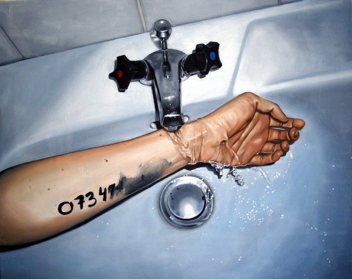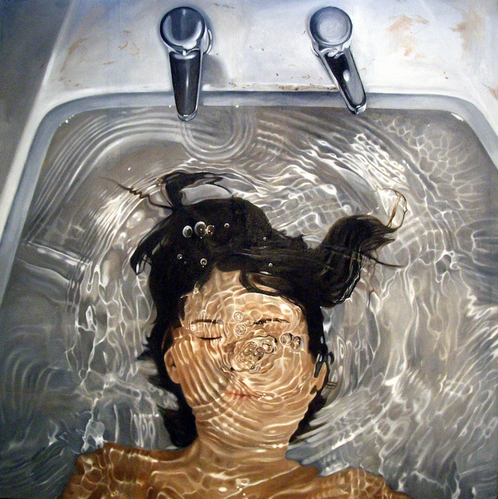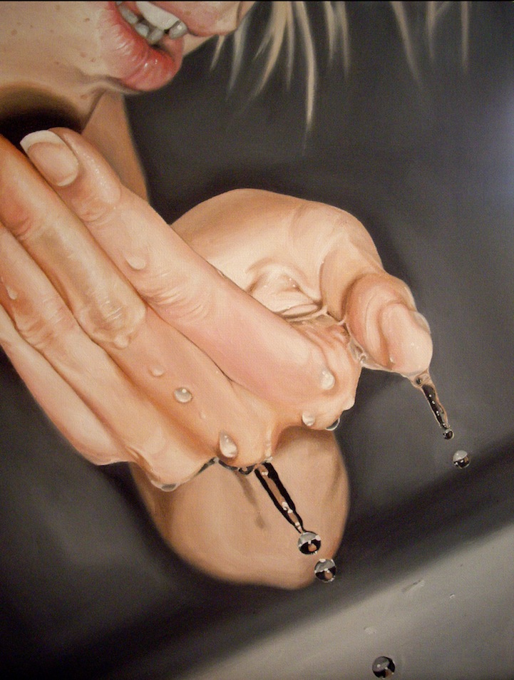 “Art can be viewed in different ways, and one person can look at a piece that I've made and just think “oh, that's a pretty picture, it's very well done”. I don't judge people who can't spot anything more in my work than that, and it's ok. But after a first glance you can also come to the conclusion that a painting like “Rinse and exhale” can tell you some sort of alternative story, like why is she taking a shower with her clothes on? And the water running on her face, is it only water or are they tears? I don't want to be too obvious when I make a painting, I want the viewer to decide what it means and what the painting is telling them.”