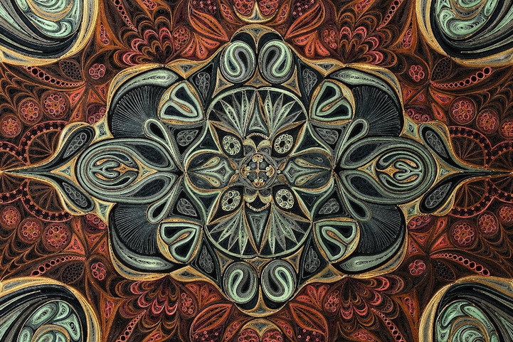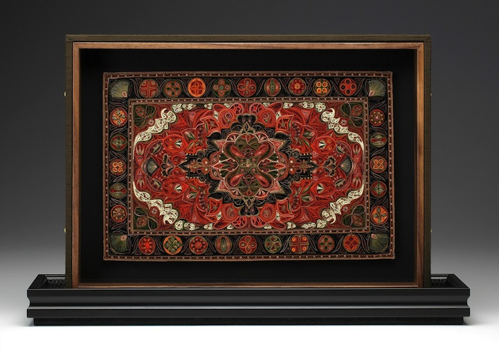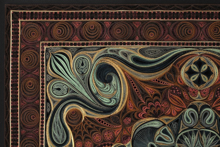Artist Lisa Nilsson recently began working on a new collection of finely detailed paper sculptures that, from a distance, look just like ornamental carpets. For the project, called Tapis Series, the artist crimps or curls long quarter-inch mulberry strips of paper into thick coils of color. Starting from the center and working outward, she arranges the sections together until beautiful, decorative patterns and designs begin to emerge.