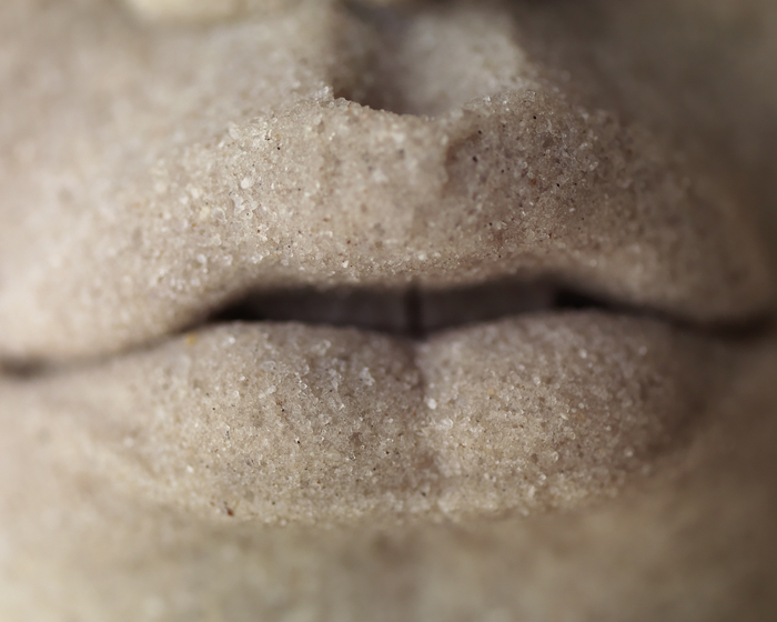 New York-based Cuban artist Liset Castillo challenges the typical notions of beauty with very temporary sand sculptures. Mouth of Sand is just one of the many pieces from this body of work entitled Human Studies. In her labor-intensive process, Castillo creates life-size sand forms that resemble models found in high-gloss magazines. She photographs each one to document the creation and then destroys them in what she calls “a commentary on the ephemeral nature of beauty, America's obsession with youth culture and decay.”