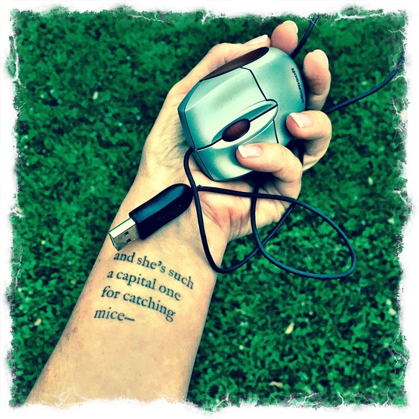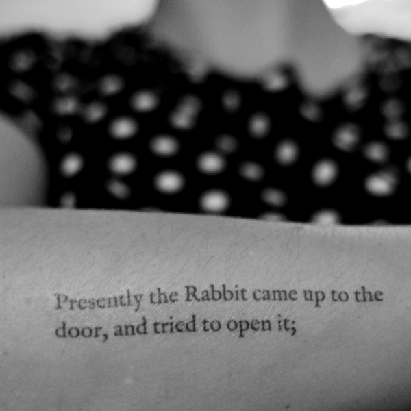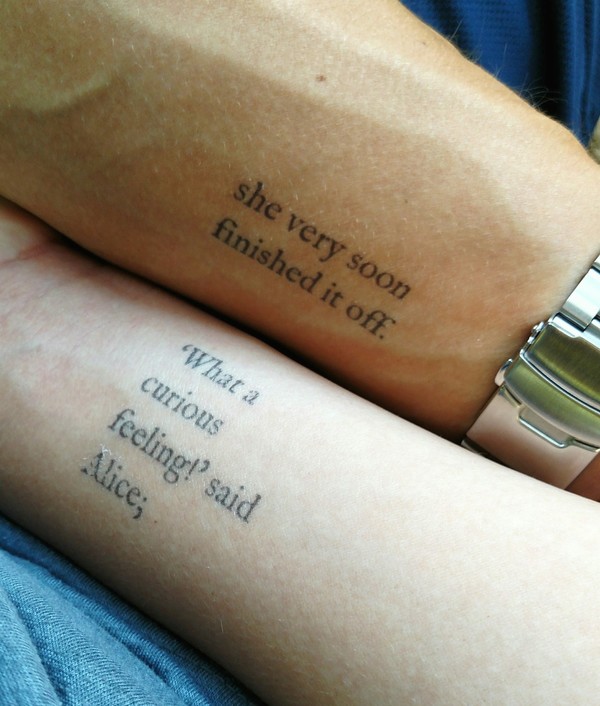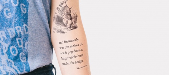 What does it take to make the world's longest tattoo chain? According to book-loving company Litographs, such a project requires 2,500 people and a plethora of temporary tattoos featuring phrases from Alice's Adventures in Wonderland. To launch their collection of temporary literary tattoos, Litographs produced a Kickstarter asking backers to pledge $1 or more for a temporary tattoo. Using Lewis Carroll's 55,668 words from Alice's Adventures in Wonderland, the company created the tattoos so that, together, they'd form the entire classic story.