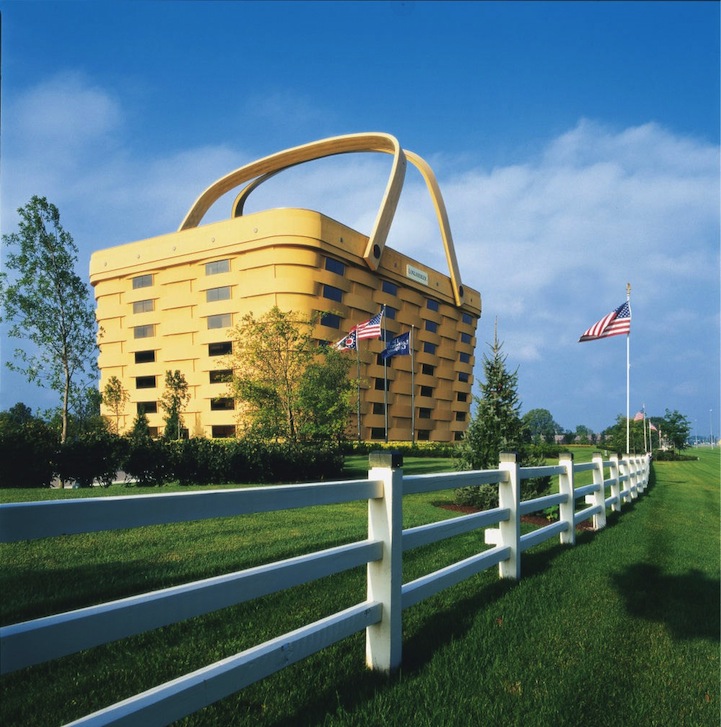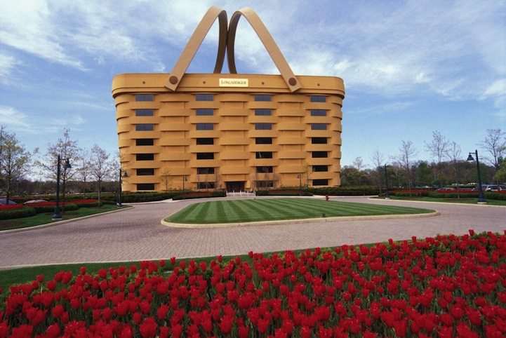 If you've ever wondered what an ant's perspective is like when approaching a picnic basket, head over to Longaberger Company's massive basket building in Newark, Ohio. The seven-story home office for the handcrafted baskets manufacturer doubles as an enormous replica of a woven basket neatly situated in a park-like environment, making its resemblance to a picnic basket fit for a giant uncanny.