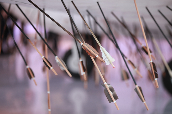 Avio was exhibited at the Faena Arts Center in Buenos Aires, Argentina in 2012. The team produced the piece as a symbol of modernization. As the sedentary, modern machine sits in direct contrast with the antiquated, wooden arrow and feather weapons, viewers are encouraged to consider the past, present, and future of technology as it affects our everyday lives.