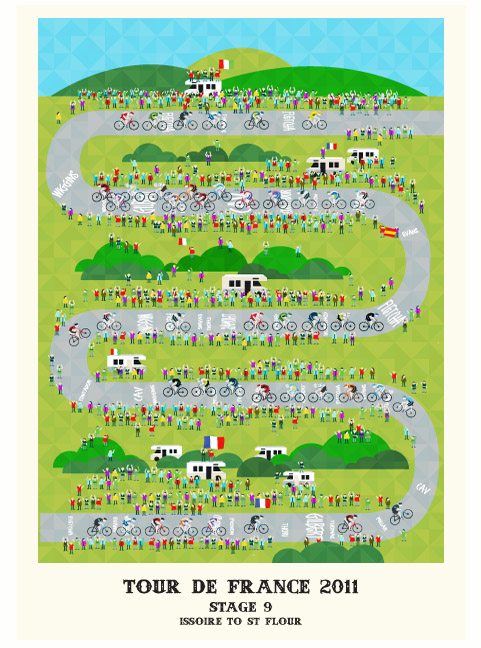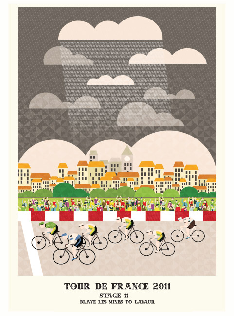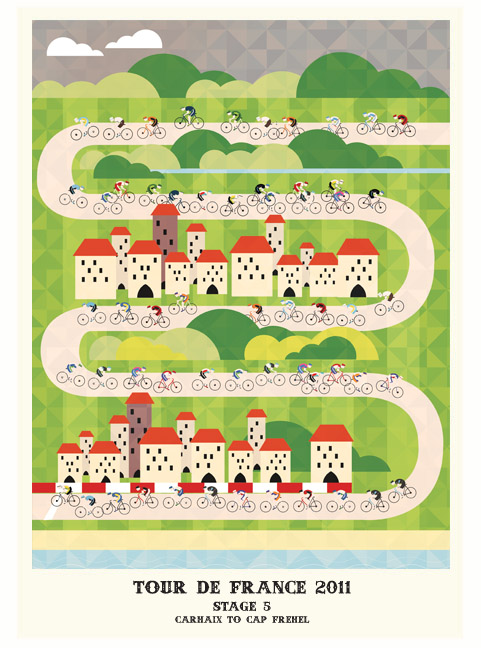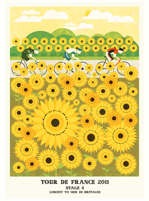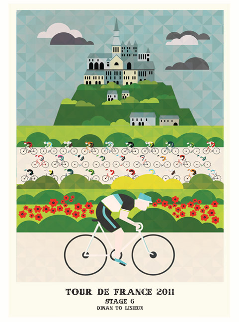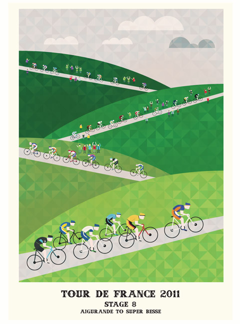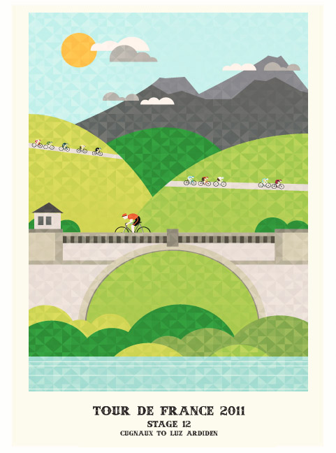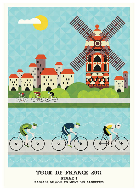 To help celebrate, Neil Stevens is creating an illustration for each stage of the event. “I'll try to include some geographical features of the landscape of each stage the riders encounter and the relevant team colours of those winning the individual stages,” he says on his website. You don't have to love cycling to enjoy these beautifully designed posters. Aren't they just lovely?
