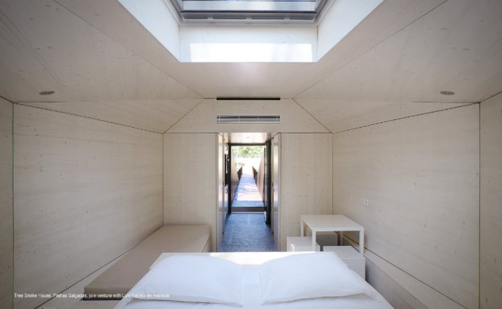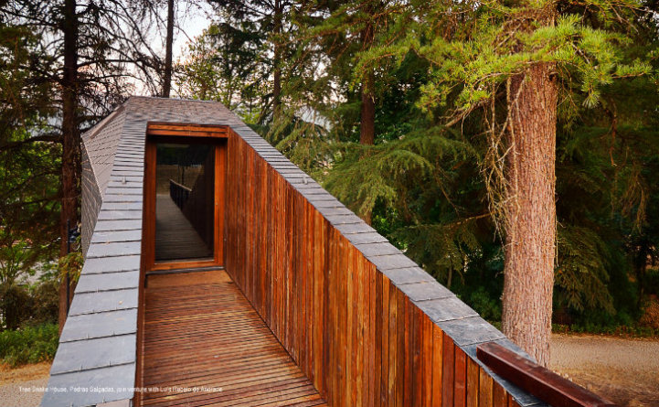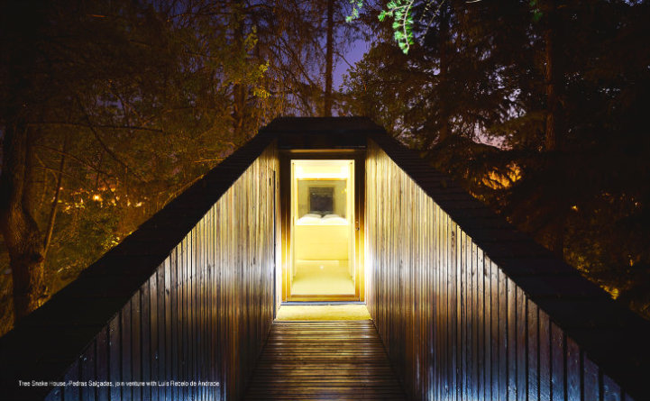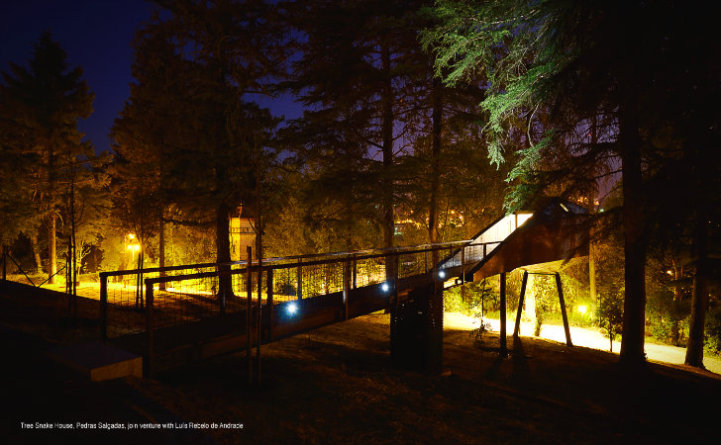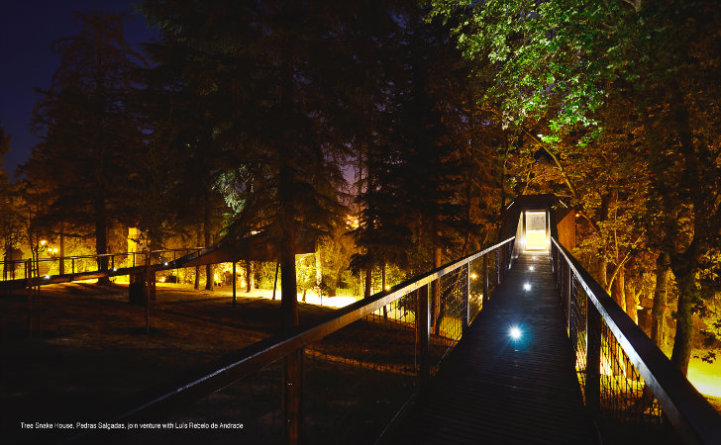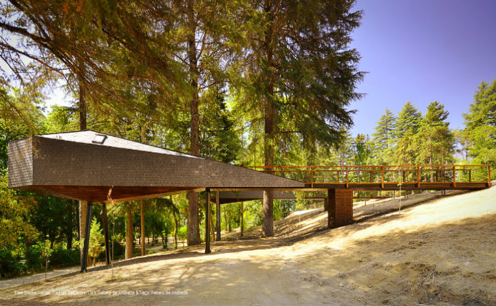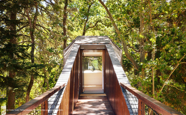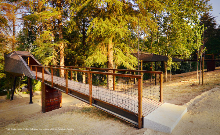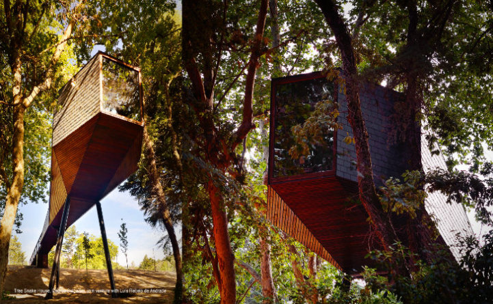 Architects Lus Rebelo de Andrade and Tiago Rebelo de Andrade have recently designed and built two new additions, known as Tree Snake Houses, to the Pedras Salgadas Eco Resort in Portugal. These single-room cabins, prefabricated and assembled on site in order to minimize the impact on the nature park, are situated on stilts high in the tree tops.