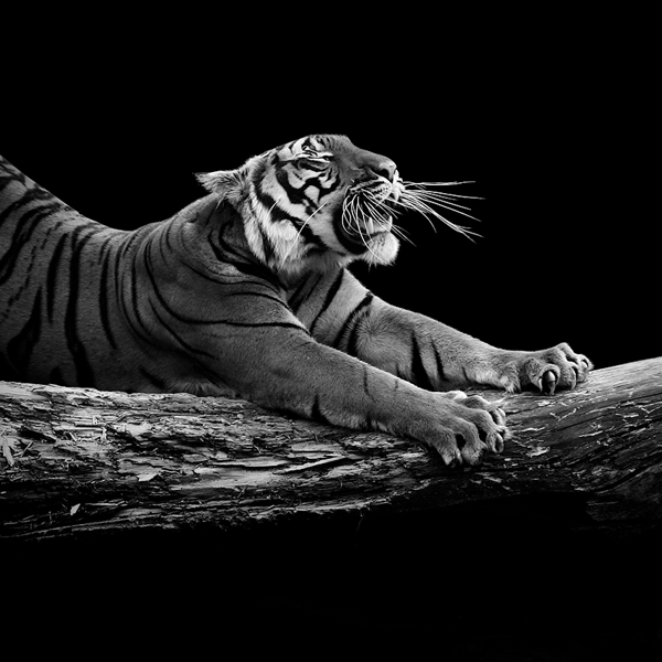 Shot in simple, but elegant black and white, the portraits showcase each animal's individuality. Holas uses his skills in digital photography and graphic design to edit out the background from his photos and instead inserts a pure black backdrop for the animals. This focuses all the attention on the animals and lets their impressive physical characteristics and personalities take the forefront.