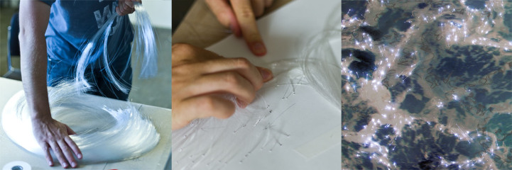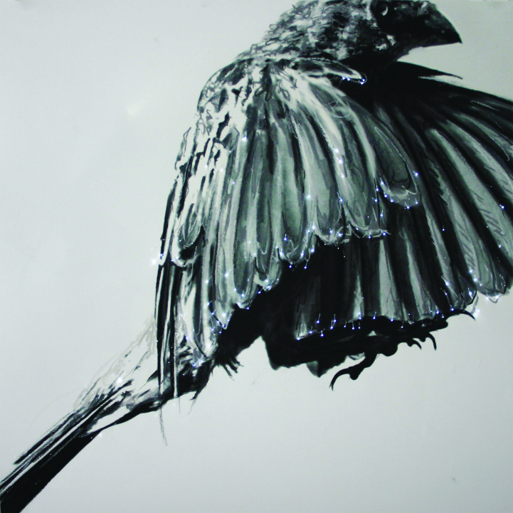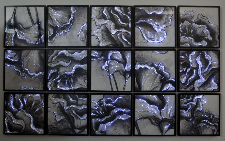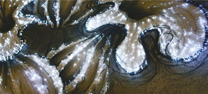 Lyn Godley, a designer and artist currently based in Philadelphia, is working on a very unique installation. It's a series of fiber optic artwork that has a great potential for possible use in healthcare settings. The pieces are all nature-based images that have been drawn over with charcoal and then outfitted with hundreds of fiber optics to create unique and beautiful visuals. However, aesthetics are only a small part of this project.