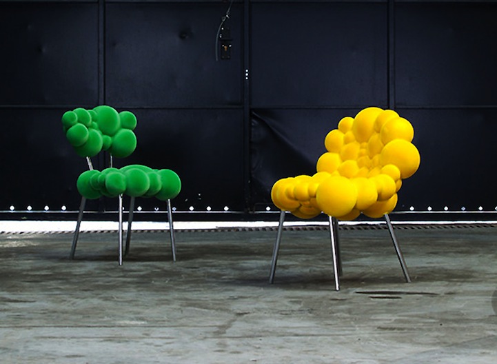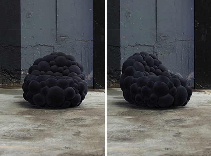 Each piece is created with a pattern of foam spheres in various sizes. Those spheres are attached to a basic, foundational structure and coated with a durable rubber or velvet-like finish. Just like with cell mutation or chemical reactions, recreation is near impossible and, as a result, each piece is completely unique.