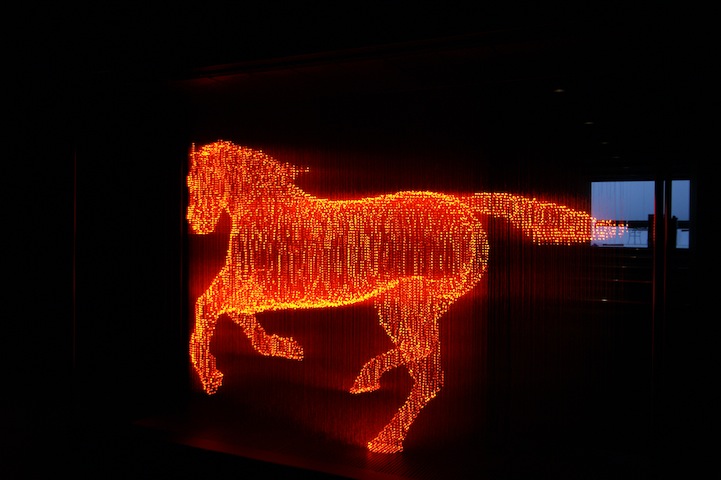 “Horse with No Shadow” and “The Blue Bird” are amazing LED light installations by Makoto Tojiki. The Japanese artist is interested in the relationship between light and shadows and how they can be manipulated. He breaks down figures to capture the essence of them in a fleeting image.