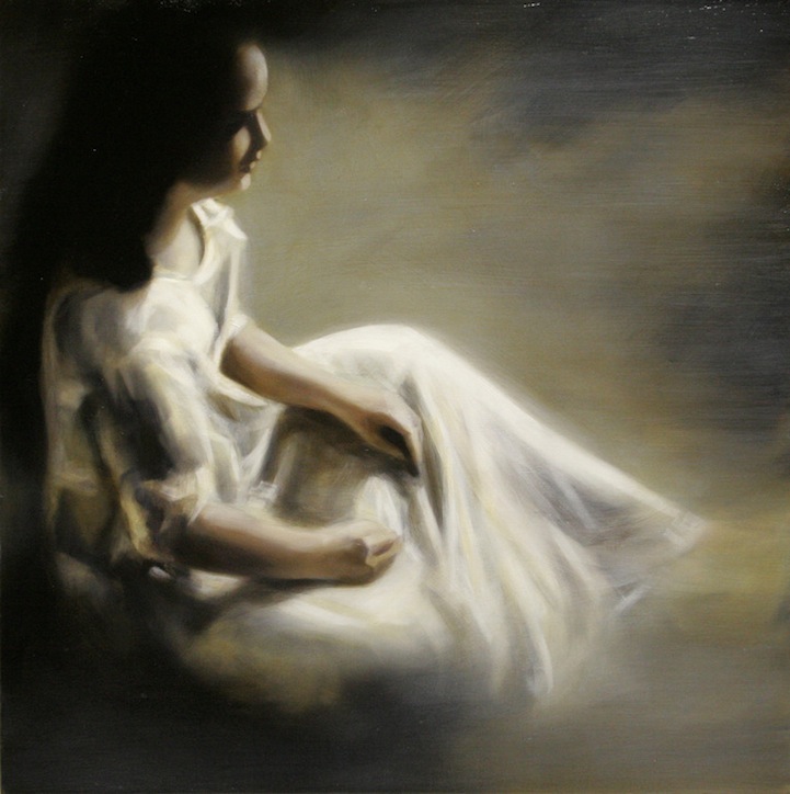 These captivating scenes of uncertainty, filled with sad eyes and sorrow-filled gestures, suggest that we are seeing just a small piece of the much more full and complete story. The artist says, “Each of my paintings are like fragments of an unknown story, like a film still, removed from the sequence of the entire film; the viewer is only presented with one frame in order to evaluate and comprehend the infinite possibilities of narrative that surrounds each painting.” Georgiadis' paintings are so powerful that viewers can't help but linger, wondering why each person seems to have such a heavy heart.