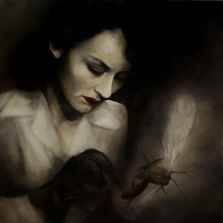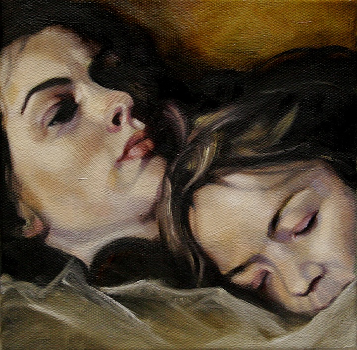 During that time, she began painting these passionate portraits, which suggest an overwhelming sadness and fragility of the subjects as they endure the fleeting moments of passing time. The artist's dark palette and soft paint strokes are a perfect match for the unhappiness that fills the canvas. As viewers observe Georgiadis' subjects, we become voyeurs, peering into intimate and private moments of despair.