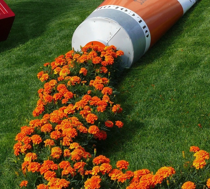 Gardeners know how much of a difference a brightly-colored flowerbed can make on a freshly-cut lawn, but a little creativity can take it to a whole other level. Rather than simply lining up a series of colorful plants, this beautiful display arranged in Boulogne-sur-Mer, France playfully sprawls vibrant marigolds into a swerving line, simulating the notion of flowers whimsically leaking out of a giant orange paint tube.