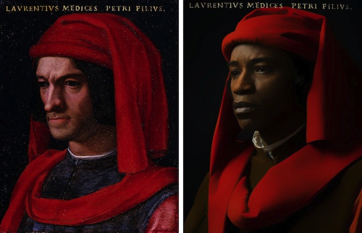 Italy-based photographer Mark Abouzeid recreates classic Renaissance paintings with real people for his photo series titled The New New World. His updated rendition of these portraits focus on composition, costuming, and props rather than finding the original subjects' doppelgnger. In fact, the photographer takes the liberty of changing the person's race in a few instances.