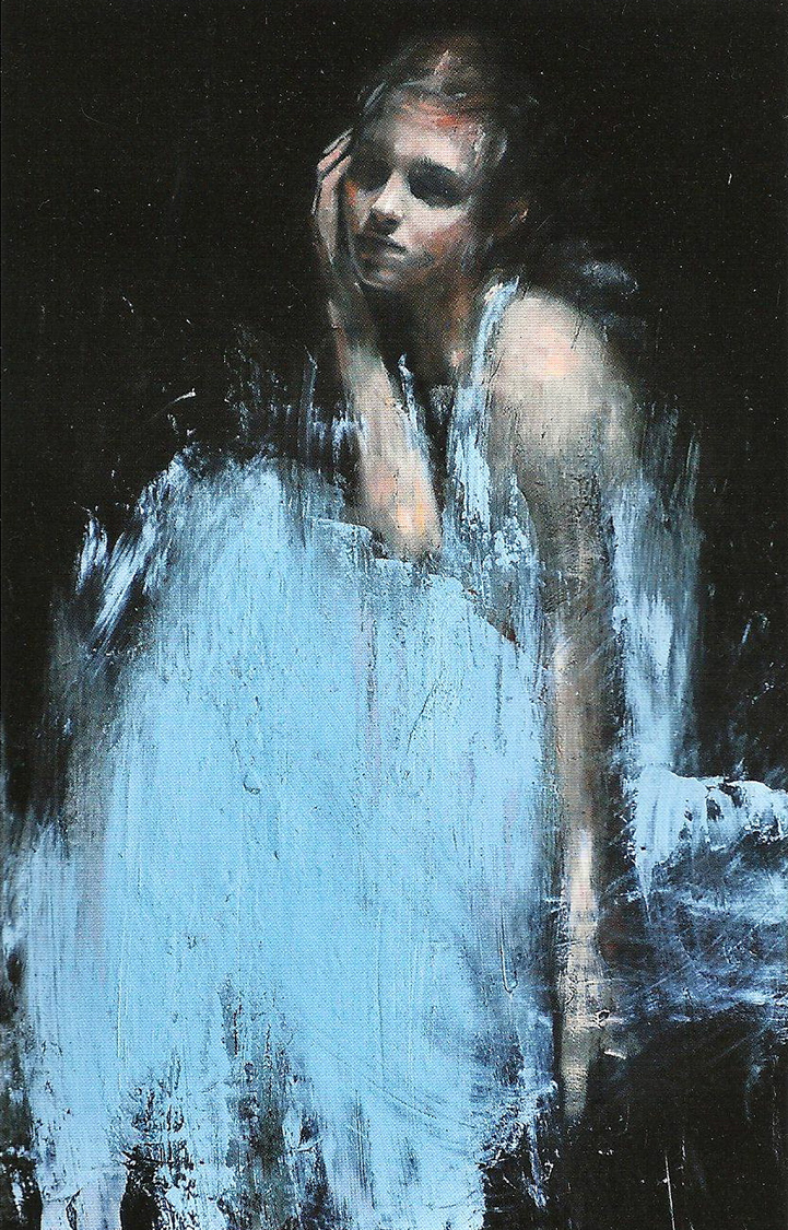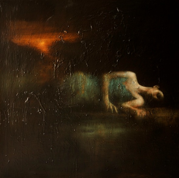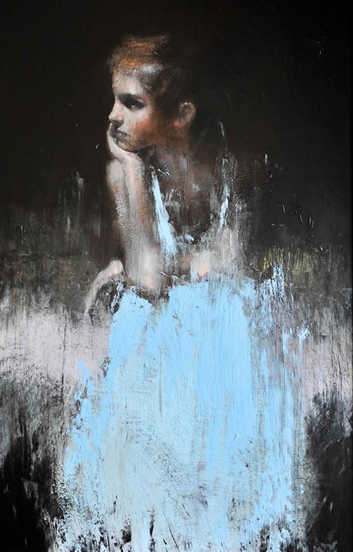 Looking at these paintings is like staring through a foggy window on a rainy day. Soft emotion in blurry form pours out of these feminine portraits by artist Mark Demsteader. The Manchester-based contemporary figurative artist is a self-taught master of the human form. His oil on canvas pieces feature pale figures set against a dark background. The dramatic contrast produces an elegant beauty that has captivated his audience in recent years. According to his bio, “His powerful depictions of the female form in clean assured lines of charcoal and gouache have sparked a renaissance of interest in traditional life drawing.”