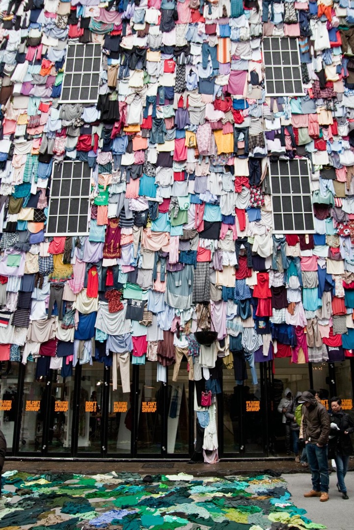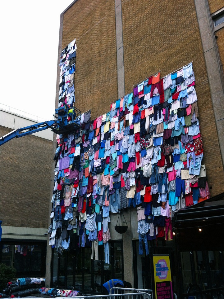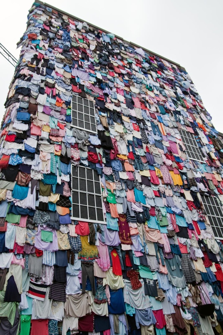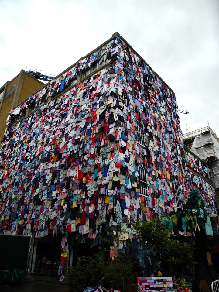 The clothing retailer's initiative has taken to the streets, installing a public display of unwanted apparel on a building in East London. The towering edifice is mounted with about 10,000 discarded garments, which really only represents five minutes worth of trashed clothing according to their campaign. It's overwhelming to visualize the statement and the intent is to shock people into change.