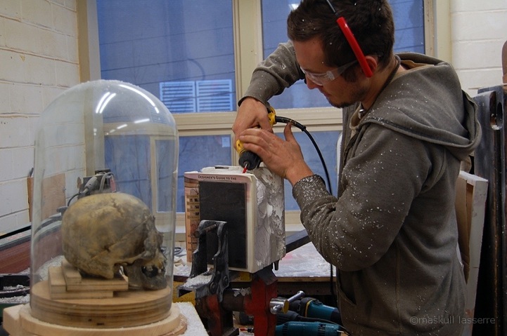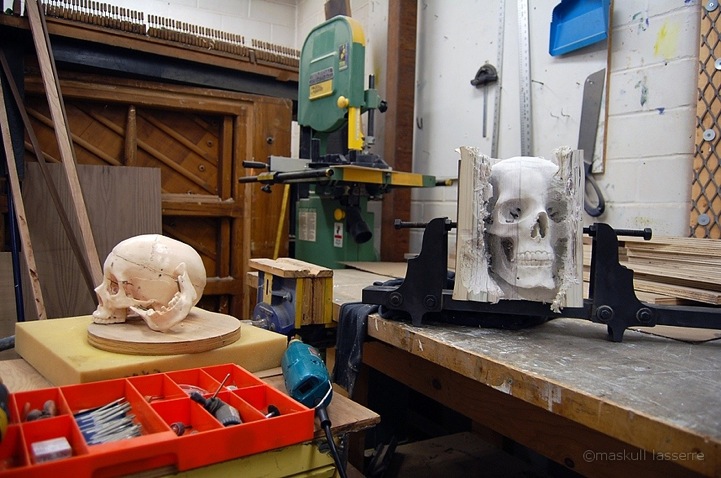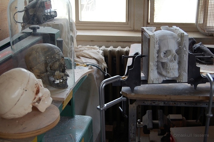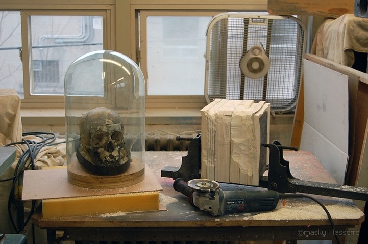 Although the skull is commonly associated with death, the piece itself is not gruesome. As you look through the series of his steps, it looks almost like he is uncovering the hidden skull within the block of books rather than creating it.