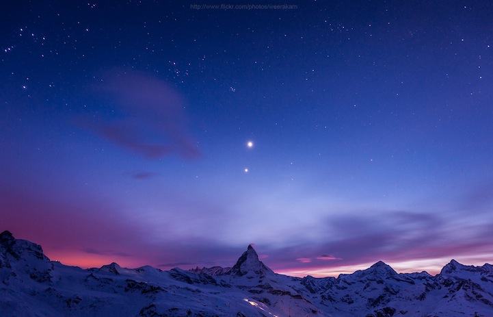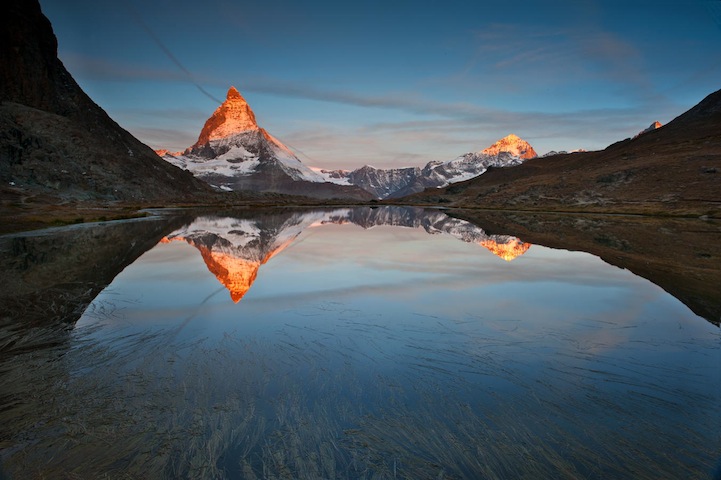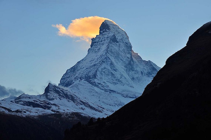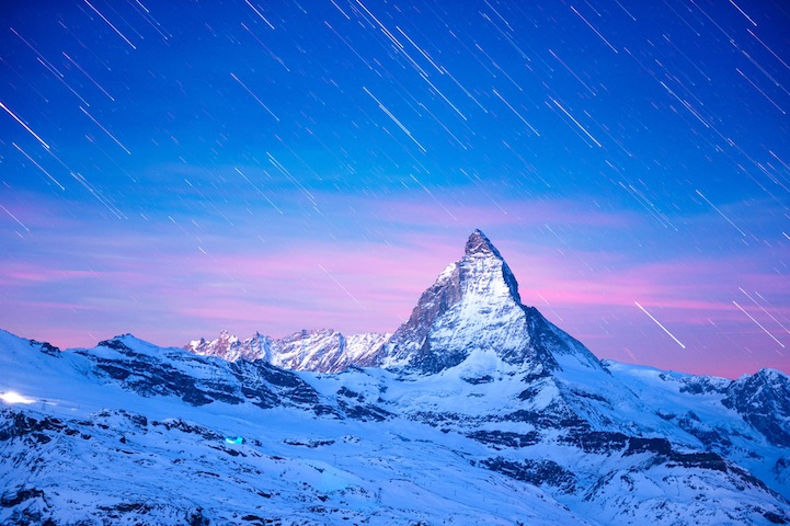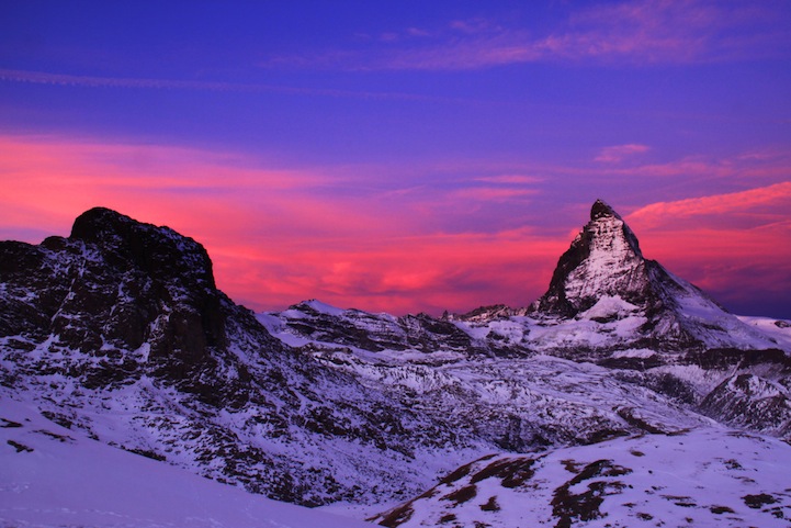 On the border of Switzerland and Italy lies Matterhorn (aka Monte Cervino), Europe's 14,692-foot-high mountain. With one of the highest peaks of the iconic Swiss Alps, Matterhorn is an attraction for both climbers and photographers. Since the 19th century, many people have approached the mountain as a personal challenge, making it their mission to climb one of its four sides. Others, still, admire the towering peak from afar, capturing its magnificence at all hours of the day.