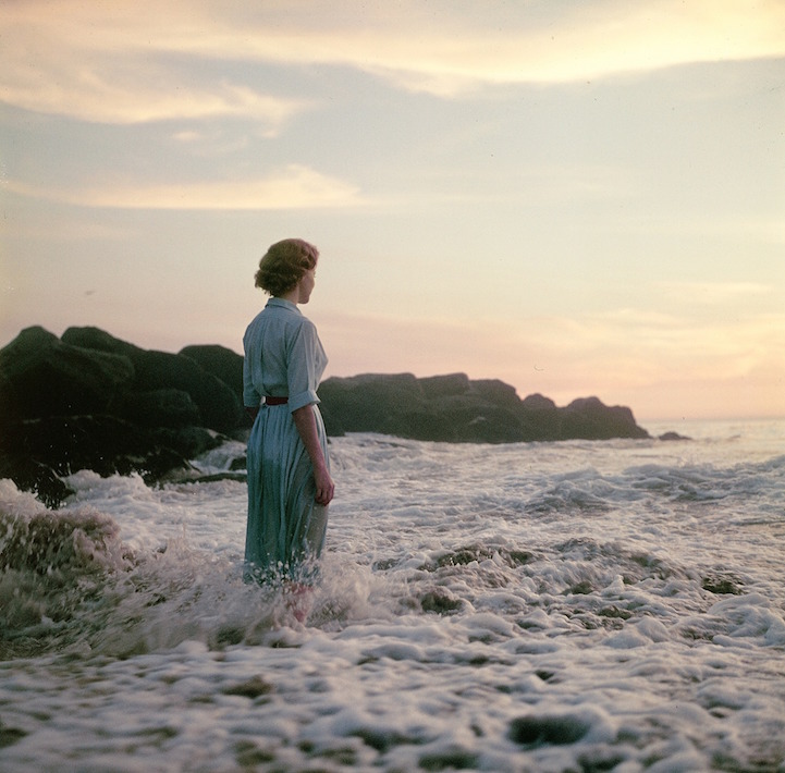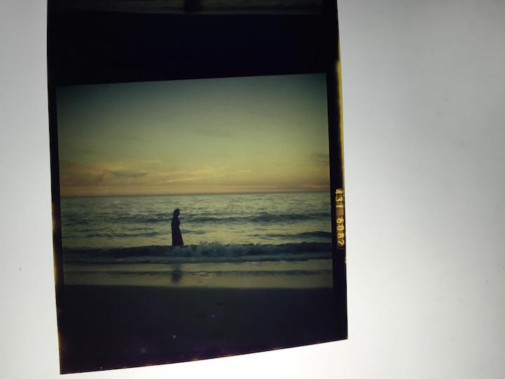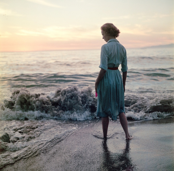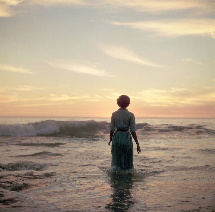 While thrift shopping in Richmond, Virginia a few weeks ago, photographer Meagan Abell came across four sets of medium-format negatives encased in plastic sleeves and sitting in a box of old vintage photographs. Curious about the images, Abell bought the negatives, took them home, and scanned them. The stunning results, which she posted on Facebook yesterday, show two young women standing on a seashore, bathed in the dreamy, rosy light of the setting sun.