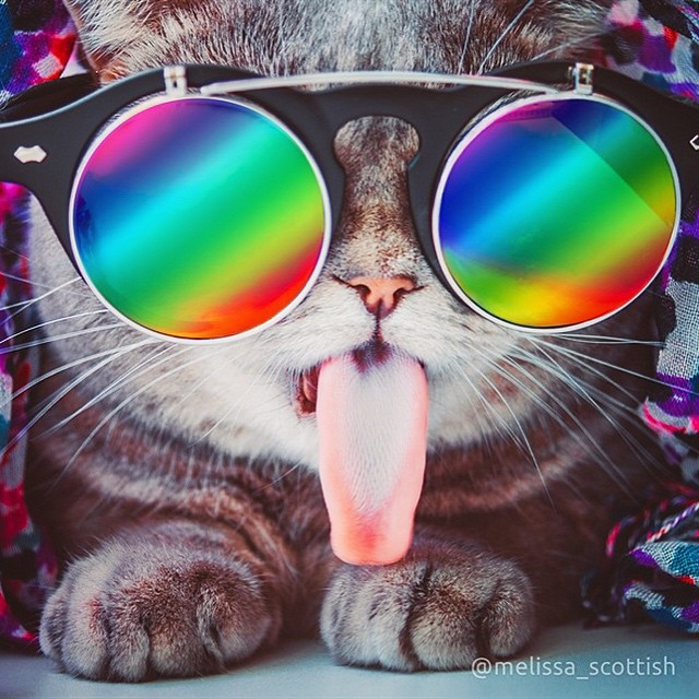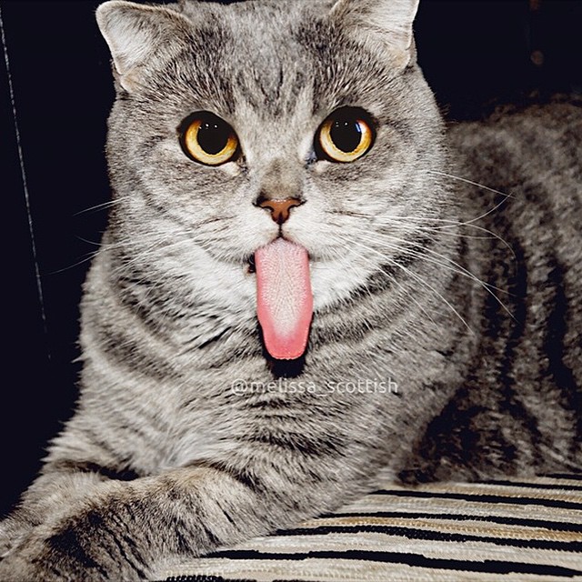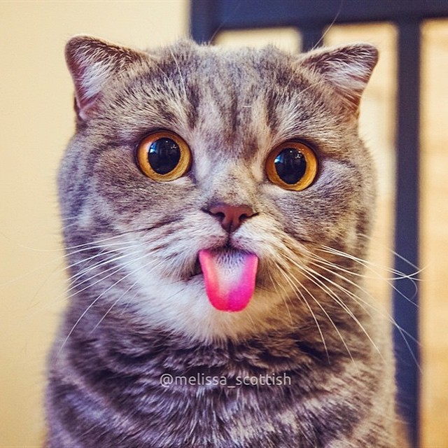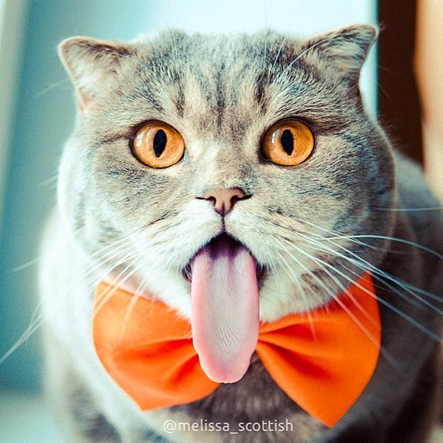Meet Melissa, an adorable Scottish Fold cat with a penchant for sticking her tongue out. She lives in Russia with her owner, photographer Alina Esther, who captures amusing photos of her adorable expressions and quirky costumes. Bow-ties, crowns, and psychedelic sunglasses are all accessories the cat sports while also showing off her pink tongue. It's both cute and unusual, as felines don't seem to be known for this silly behavior.