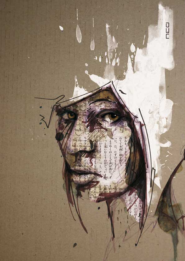 Using a variety of different tools including a bic pen, watercolors and Chinese ink, artist Florian Nicolle creates amazing, mixed media portraits. After a rigorous amount of drawing and painting, she then adds texture and detail using Photoshop.
