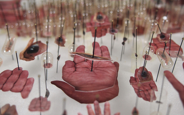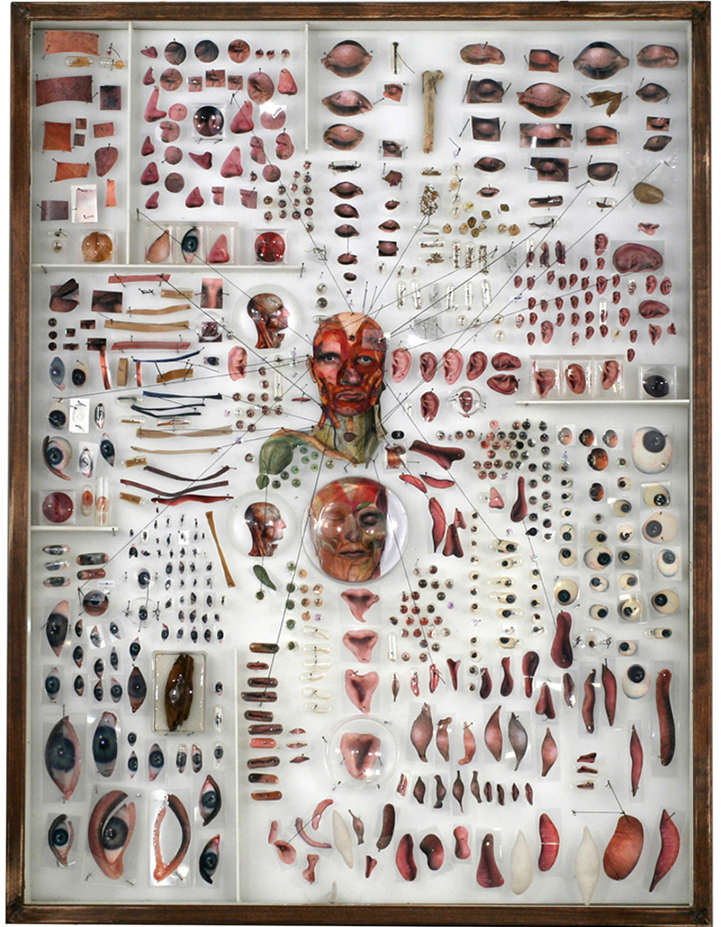 At first glance, it looks like New York-based artist Michael Mapes actually chopped up body parts to produce his recent mixed media art. According to his bio, the artist likes to “mask the artistic with a scientific veneer by referencing entomological and forensic science.” Through the use of many real scientific materials like insect pins, gelatin capsules, test tubes, specimen bags, and surgical threads, as well as personal DNA details like hair, fingerprints, and handwriting samples, Mapes produces surreal and abstract pieces that will have you staring in awe.