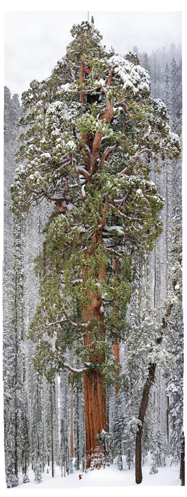 Using a rig system made up of ropes, Nichols and his team raised a camera so that they could take shots of every part of the 247-ft-tall, 27-ft-wide giant. It took Nichols 32 days of work to photograph the tree and stitch together the final image from 126 individual photos, creating the first picture of the President captured entirely in a single frame. The result is a stunning image that shows the majestic tree in all its glory, towering high above the snowy ground and tiny people.