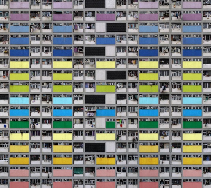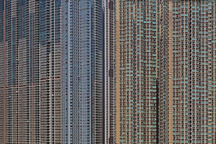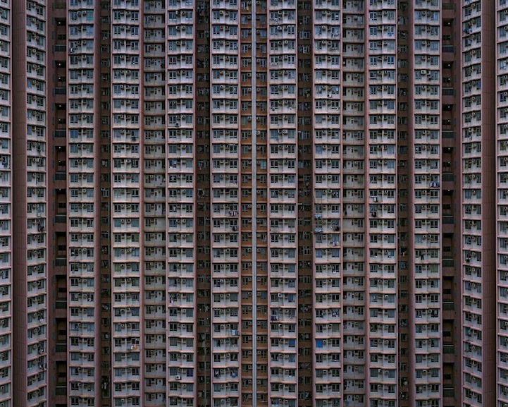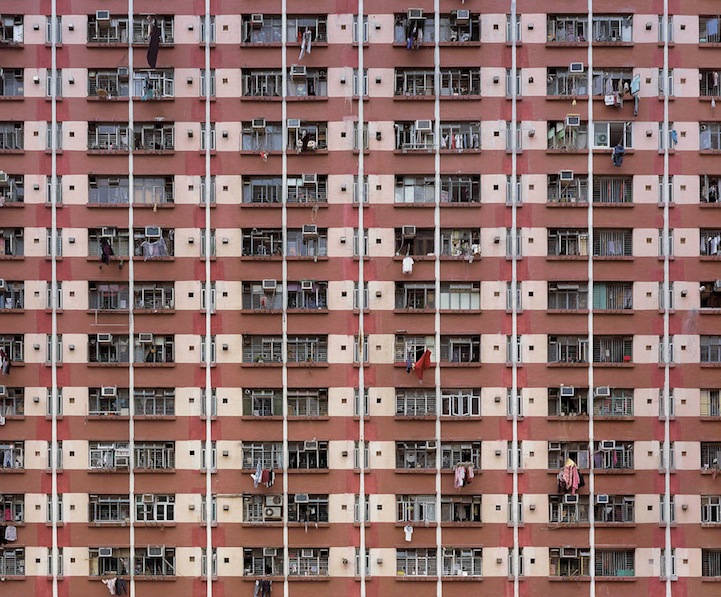 In Architecture of Density, German photographer Michael Wolf takes the massive, busy city of Hong Kong and narrows it down to the smaller details of its high-rise apartment buildings. By eliminating the sky and cropping in on just specific sections of the buildings, Wolf transforms the repetitive rows of mesmerizing patterns and textures throughout the city into flat abstractions. Other than the occasional laundry hanging out to dry, the stark images lack any real human presence which is an interesting contrast to the highly populated city that lives and lingers behind those walls.