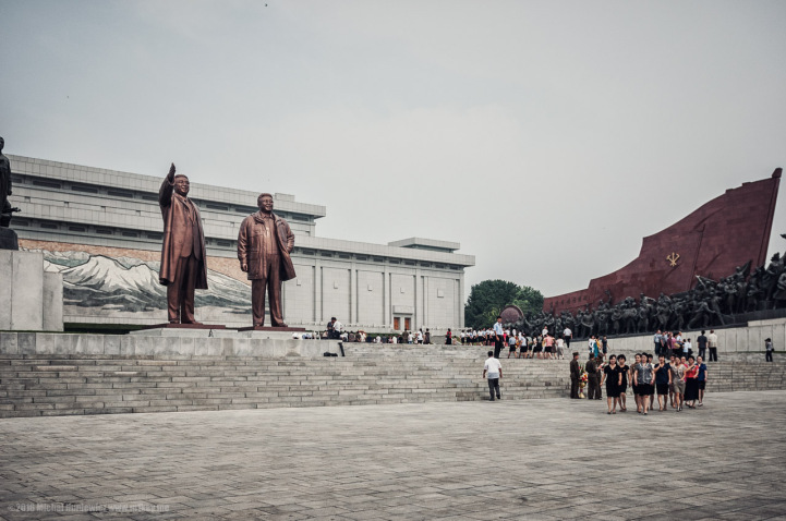 In the center of the capital – the Central District – at the Kim Il-sung Square, the Grand People's Study House stands big and proud, exactly in front of the Juche Tower on the other side of the Taedong River. The library inside that building has some foreign books, but one needs a permission to get them, because otherwise they would contaminate the North Korean minds with Western ideas. Also, did I mention that the official name of North Korea is Democratic People's Republic of Korea? Where once Marx and Lenin were displayed, now the two–with all due respect–usual suspects are smiling at us with kindness.