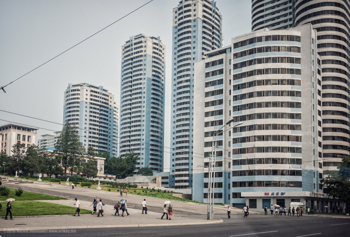 The incredible series provides some insight into a land and culture that's cut off from the rest of the world. Huniewicz captures Pyongyang's sweeping architecture and monuments, as well as its citizens' everyday lives–namely, their day-to-day existence with constant military presence. He notes that they spent a long time in the “good” parts of the city, while they simply passed through the less ideal areas. Thanks to Huniewicz's craftiness, he was able to photograph both.