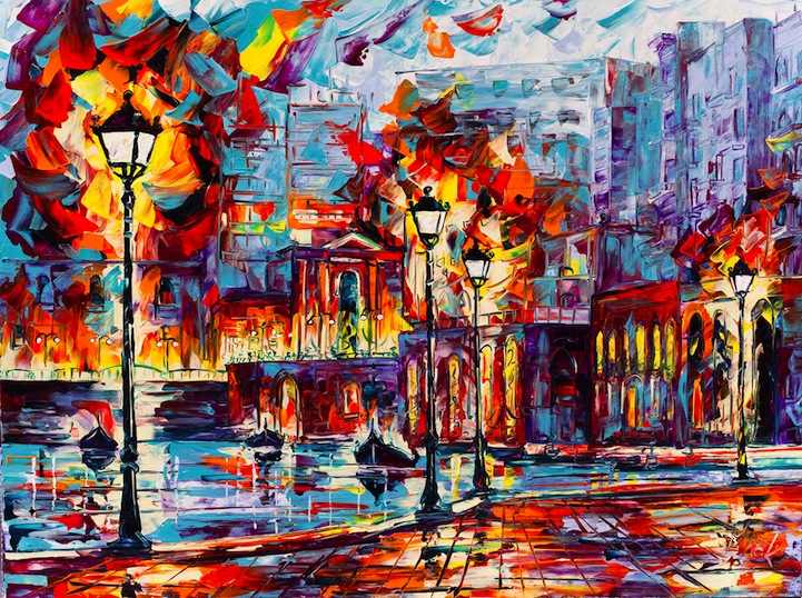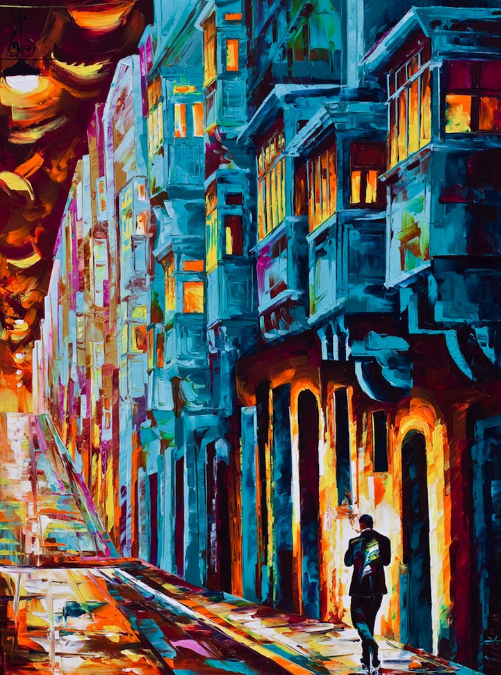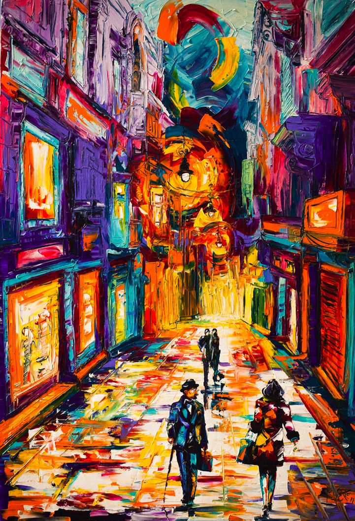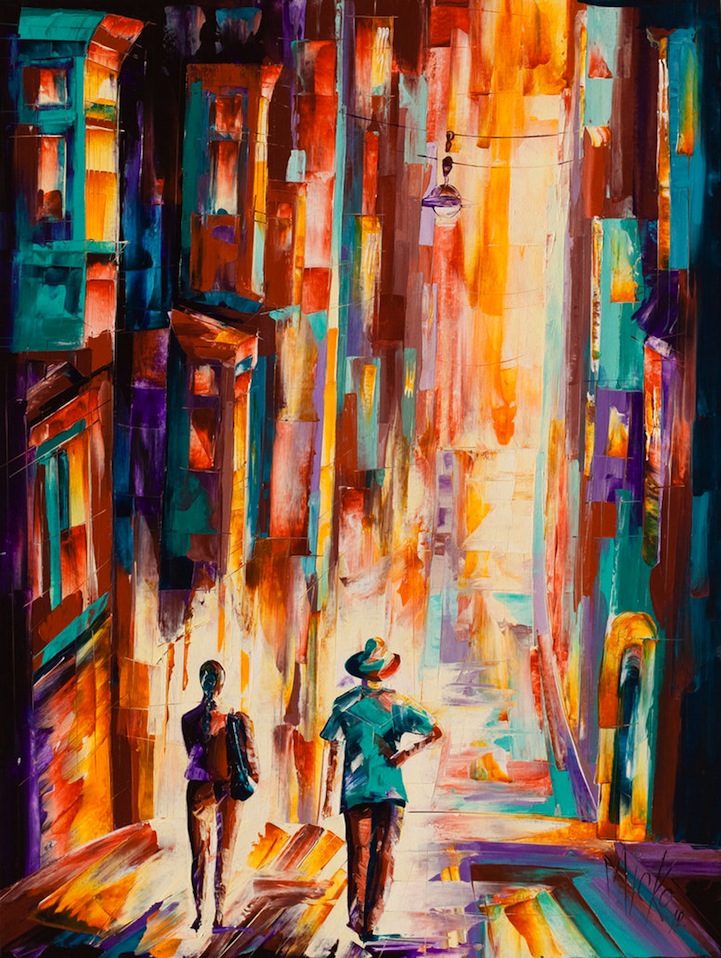 We don't know much about artist Micko-Vic, but what we do know is that he has a collection of extremely stunning and expressive acrylic paintings that will instantly capture your attention. The artist's style is a modern day form of cubism, in which he uses a special technique to create layer upon layer within each scene. He first sketches out the scene with pencil and brush, and then adds a combination of acrylic and impasto gel with a palette knife to get the final, textured effect. His work ranges from dimly lit city streets and cityscapes to lively and energetic portraits that won't easily be forgotten.