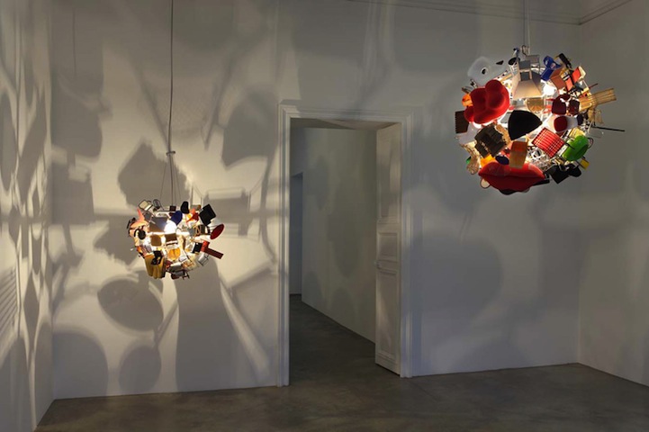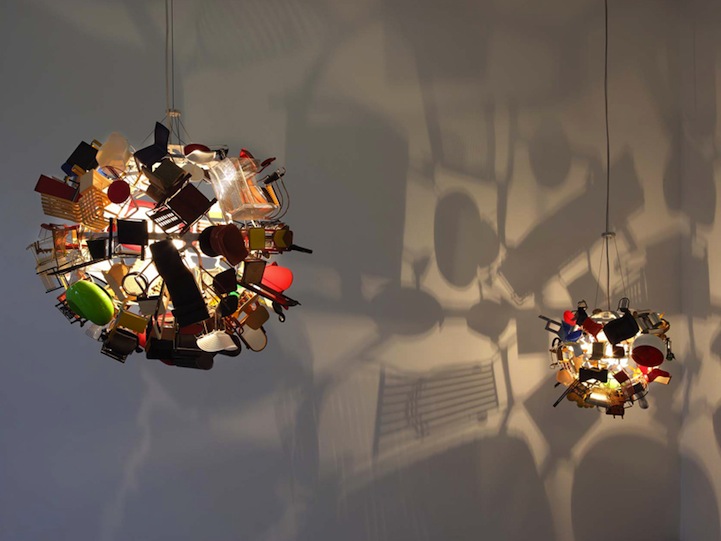 Design lovers rejoice! If you're looking for something unique and interesting, you've come to the right place. Italy native Paola Pivi created Nice Ball, a lamp made entirely from 80 miniature chairs and tables representing the iconic furniture designs from the Vitra Design Museum collection. When lit, the light bulb within the sphere projects a silhouette of the furniture, which allows the viewer to experience Vitra's designs both in 2D and 3D.