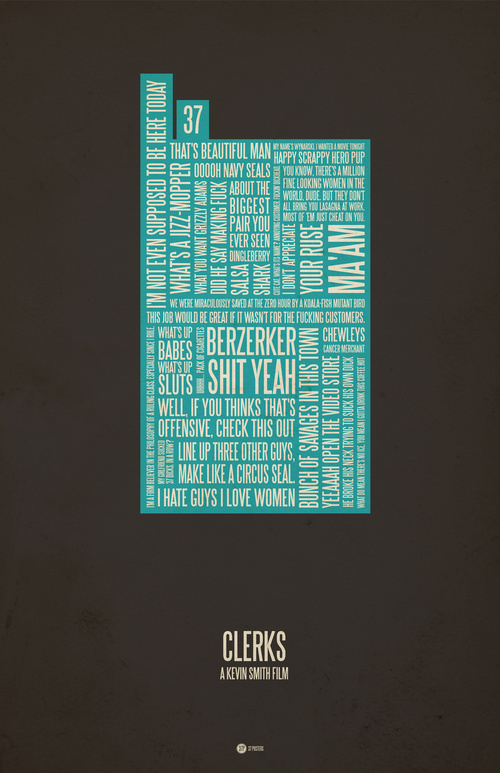 We've all seen our fair share of minimalist movie posters but to add in famous quotes brings them to a whole new and interesting level. Graphic designer Jerod Gibson just recently created this series called 37 Posters. Each poster not only contains a simple silhouette image from a movie or tv show, it's also filled with memorable quotes. Love how he's incorporated typography into these.