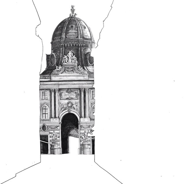 By concealing these architectural beauties behind the faceless structures, Sainsbury references a visual experience that we'd have if we were walking on the city streets. Any building, no matter how opulent or impressive, is going to remain partially hidden by other environmental elements until you're standing right in front of it. There's a certain charm to this ritual – as you inch closer to the structure, more is revealed. Sainsbury's clever drawings are a recognition of this phenomenon and demonstrated with a stunning artistic technique.