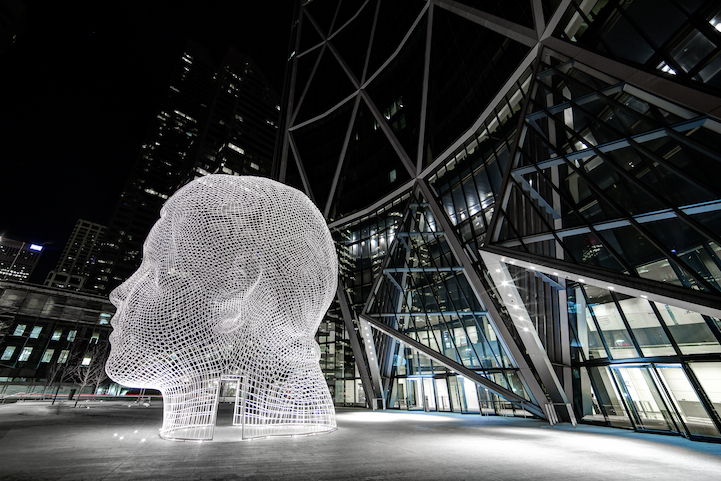 When I visited Calgary earlier this year to cover Beakerhead, I had the pleasure of walking around the city with an extremely talented photographer, Neil Zeller. When we approached Calgary's tallest tower, The Bow, this amazing sculpture by Jaume Plensa named Wonderland immediately caught my attention. What stood out most was how remarkable it looked from several distinct angles.