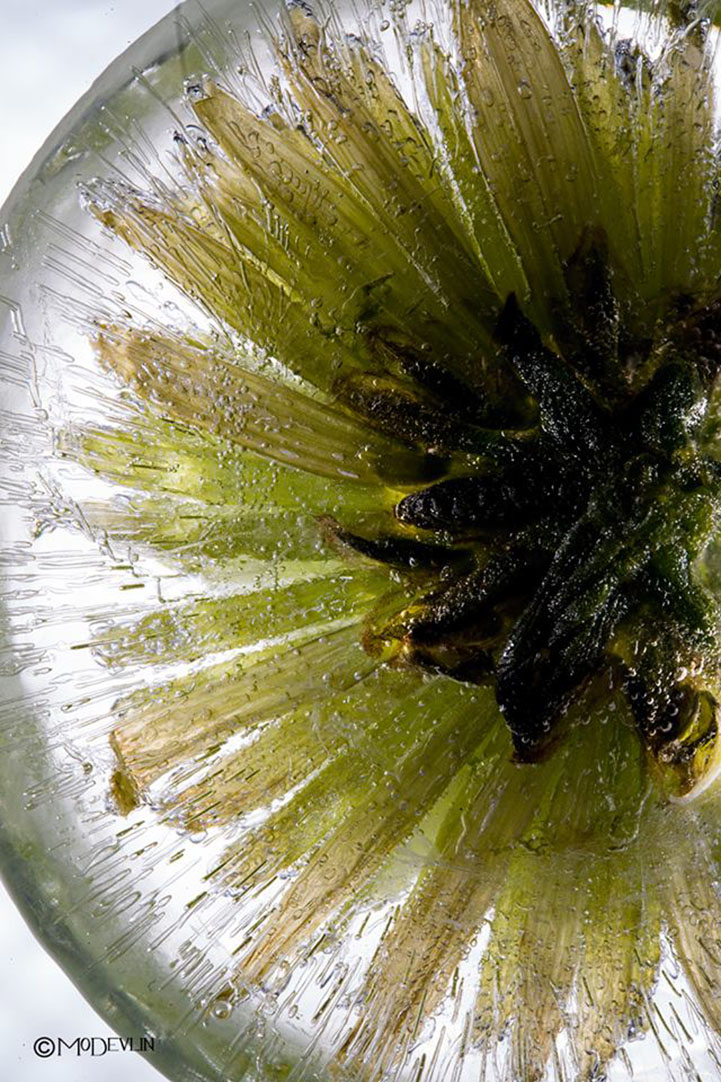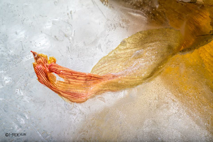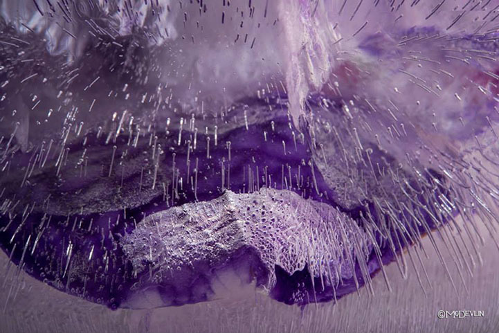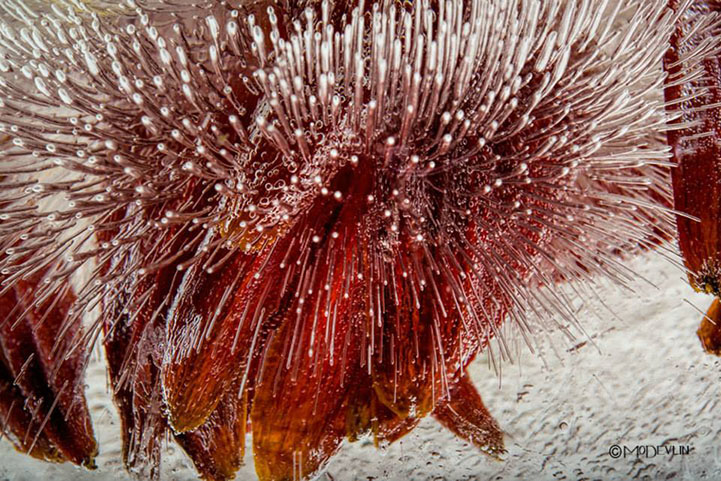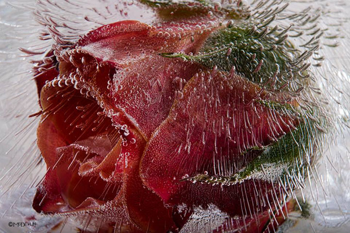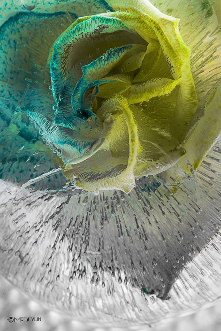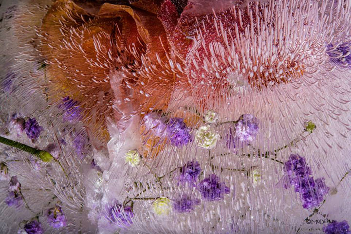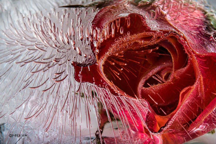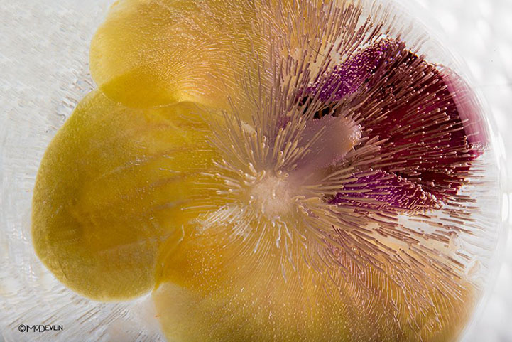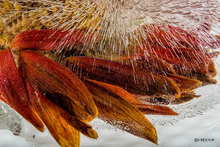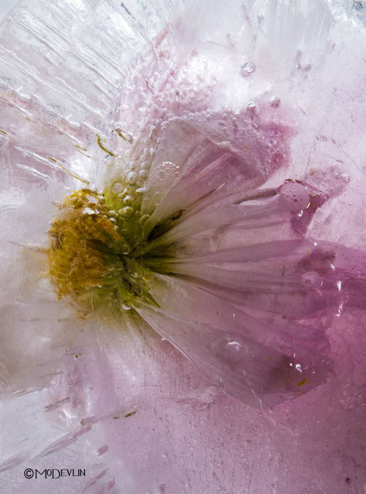 Devlin enjoys this ever-changing process almost as much as the final photographs and he says, “I know that I have become somewhat obsessed with my frozen posies because when I bring flowers home, my wife asks, ‘Are those for me or the freezer?'”