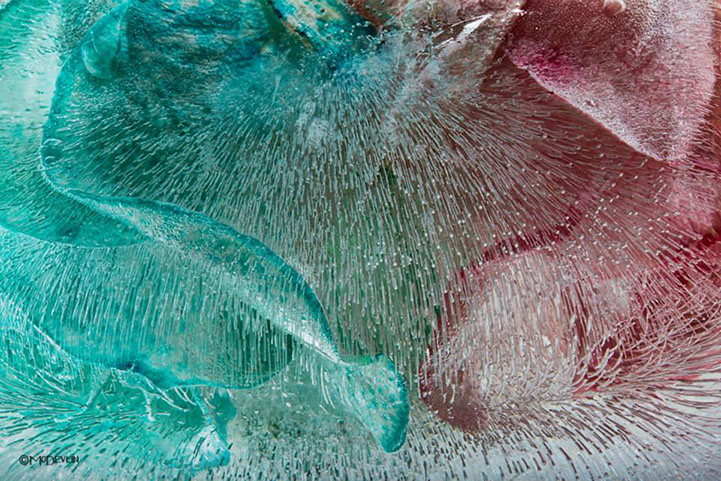 Photographer Mo Devlin takes an interesting approach to flower photography by first freezing his buds in order to produce these stunning, abstract compositions. Using a macro lens, Devlin captures intriguing light, texture, and unexpected details within the dramatic colors and shapes set in ice.